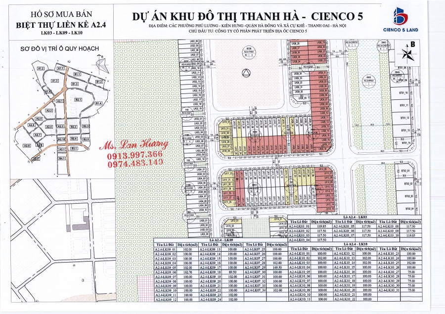 Bảng hàng liền kề giá rẻ tại Thanh Hà B tổ hợp B1.4 B2.3 B1.3 Cienco 5 Hà Đông