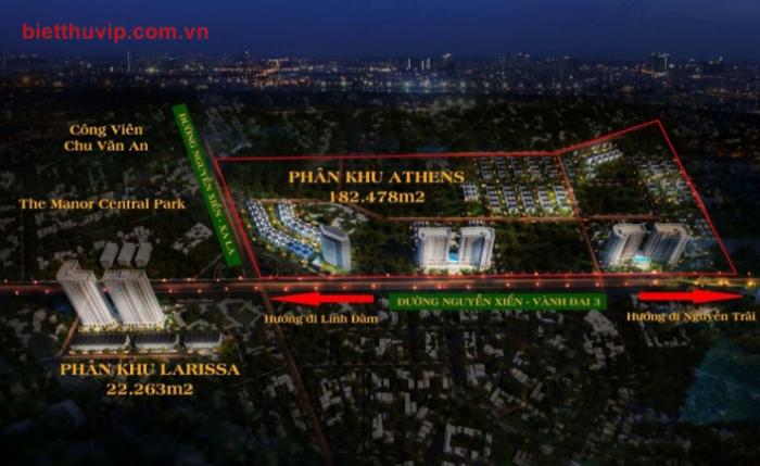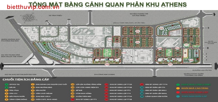 + Diện tích phân khu Athens - Tây Nam Kim Giang: 182.888 m2, vơi 528 lô Liền Kề Biệt Thự song lập và đơn lập cùng với 1155 căn hộ chung cư, 388 căn hộ Officetel.